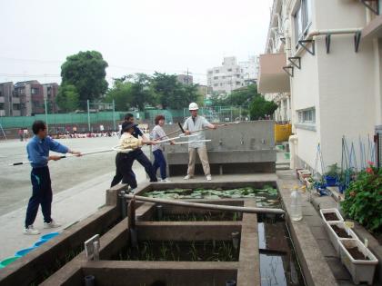 東玉川小学校では月1回の避難訓練を行っています。4月は火災、5月が地震、そして6月は不審者対応の避難訓練でした。災害の時とちがって、職員室から一斉放送したときの情報に特別な言葉を入れています。子ども達の避難とともに、先生方や主事さんが協力して、不審者へ直接対応する訓練も取り入れています。