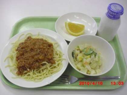 「はじめは残してもしょうがない。とりあえずは慣れるところから…」というのが1年生なのですが、初日(メニューはカレーライス、杏仁豆腐、牛乳)から食缶は空っぽでかえってきました。この1週間を見ても、残菜はとても少なく、モリモリ食べてくれていました。とても元気な1年生です!