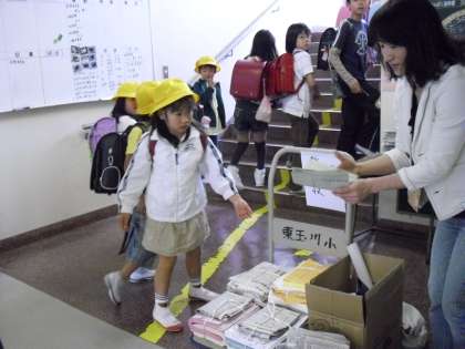 ひがたまで(本校の愛称)昨年までに回収したエコキャップは、66,280個でした。これは、ワクチン83人分として寄付しました。新聞回収は、PTAエコ委員会主催の資源回収とあわせて、積み立てられ一部「環境基金」としてエコ活動に還元されています。たくさん回収することが目的ではなく、エコに興味をもち、行動できる人がふえてほしいという願いのもとに活動しています。
