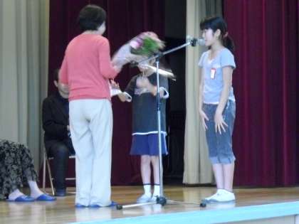 先生・主事さん方お一人お一人のお別れの言葉から、東玉川小学校の子どもたちを愛する温かな心が伝わってきました。そして、代表の子どもたちも、心から感謝の気持ちを述べ、花束をお渡ししました。今まで、ありがとうございました。