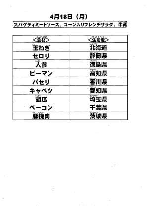 給食食材の産地情報