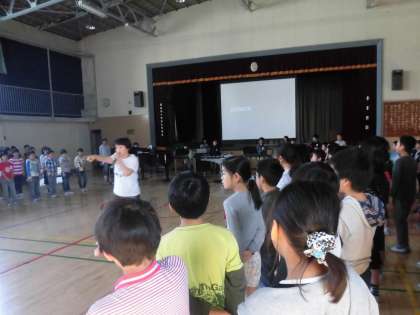 朝の活動の一つに音楽朝会があります。全校児童が体育館に集まって、全員で歌を歌ったり、時には聞き合ったりしています。伴奏は毎回音楽委員会の子どもたちです。今朝は、校歌と、離任式で全員合唱するCOSMOSの練習をしました。今日も元気な歌声が体育館じゅうに響きわたりました。