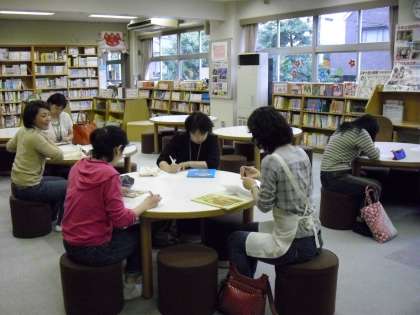 毎月、第二火曜日は読み聞かせになっています。読み聞かせが終わると図書室で読み聞かせカードに記入したり、情報交換を行ったりしています。
