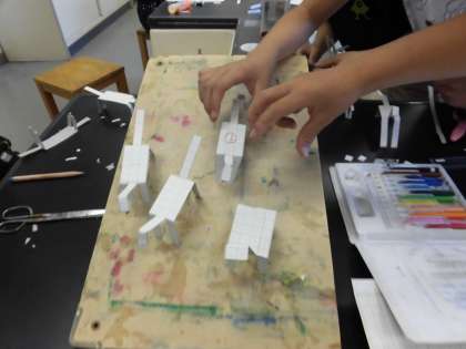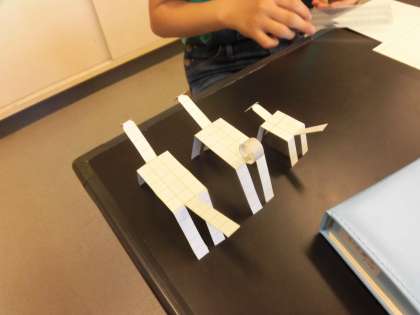 クラブ活動がありました。科学クラブででは、今回、トコトコアニマルをやりました。工作用紙を切って足を二つに分けたり、端を曲げたりして工夫しました。早く歩くのやすぐ倒れるのもつくりました。特に倒れやすいのは足を長くすることです。