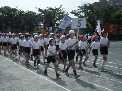 大変暑い日となりましたが、初めてとは思えない出来ばえで、練習は、予定通り2校時までに終了しました。真剣に勝負すること、友達と力をあわせて表現する楽しさを、子どもたちの笑顔から感じ取ることができました。