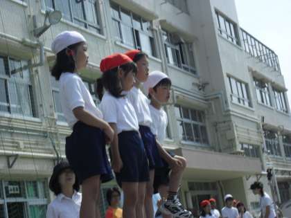 大玉おくり、練習では赤が勝ちました。判定基準を教師間で再度確認しあいました。