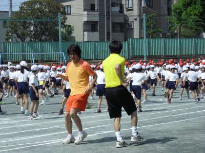毎年バージョンアップしているリズムダンス。教員も一緒におどります。