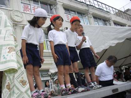 児童会のスローガン・マスコットの発表の後、1年生のちかいの言葉がありました。