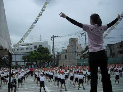 演技は、準備運動から始まりました。ストレッチもリズムダンスもしっかりできました。