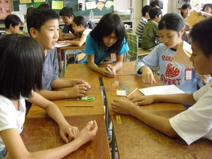 私の班(国)は、紙はあるけど、定規しかなくて最初「おかしいな」と思いました。でも、道具がたくさんある班(国)に借りたり交換したりして、なんとか製品ができました。これが、本当の国で、他の物を、すぐ交換したり貸したりしてくれない国だったら、私たち(発展途上国)は、とてもあんなに作れなかったなと思いました。発展途上国は、先進国の助けが必要なんだなと思いました。