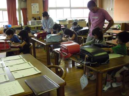6年生の授業参加(世界銀行のお手伝い)終了後、算数教室をのぞいてみると3年生が自主的な学習に取り組んでいました。授業終了後、各クラスからやってきた子どもたちは、自分でプリントを選び、問題を解いていました。