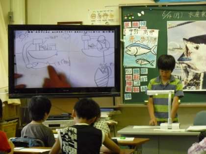 5時間目に、学校運営委員会主催の授業研究として、5年2組社会「水産業」の授業を公開しました。公開週間中でしたので、保護者の皆様の参観もありましたが、学年と研究推進委員長、運営委員が授業を参観し、6校時終了後、学校運営委員でもある鹿毛雅治先生からご指導いただきました。