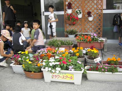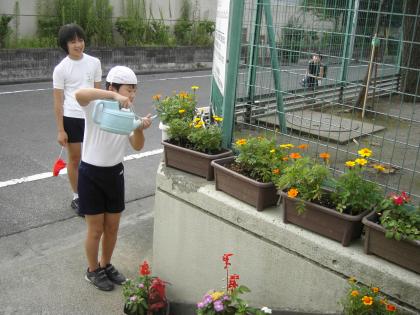 アヒル門周辺のプランターのお世話分担は6年生。6年生は、その後「おはようコミュニケーション」の場所へ。