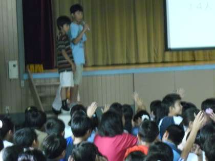 「食育月間」は、食育の国民への浸透を図るための月間として、「食育推進基本計画」により定められました。毎月19日は食育の日です。今日は、普段見学することができない給食室のようすについて給食委員会の人たちが発表してくれました。クイズもありました。健康な体は食生活から・・・・。