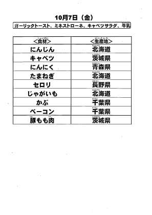 給食食材の産地情報