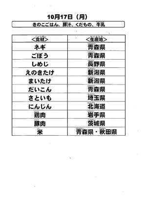 給食食材の産地情報