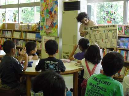 そこで、まず図書室の本がどのようなきまりでならんでいるか確認しました。次に、図書館クイズで本をさがしました。中でも百科事典コーナーが人気でした。図書室のしくみや使い方がわかると、調べ学習を効率よく進めることができます。そして、奥沢図書館など公共図書館の利用にも役立ちます。