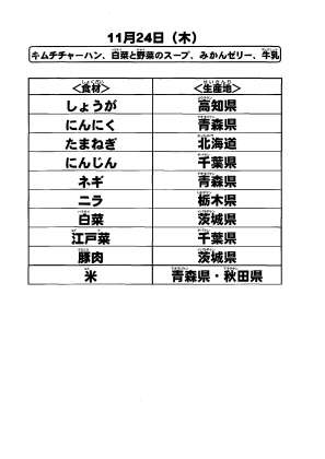給食食材の産地情報