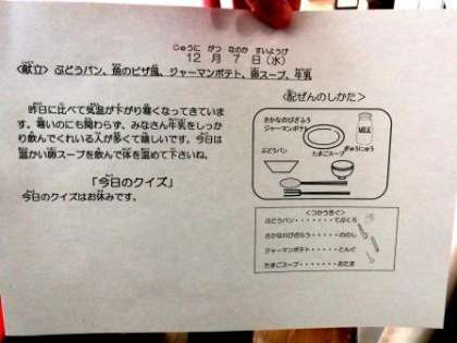 ユニークな給食(大根カレー,ビスキュイパンなど)があるからです。そんな給食の中には六年生の私も食べたことがないような給食もあって今日の給食は何かなと、一時間目から献立表を眺めています。