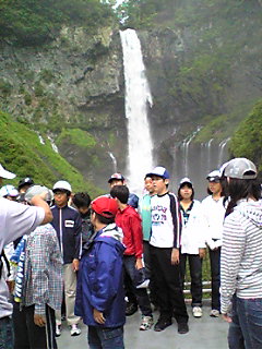 8時華厳滝到着。宿舎を出発した時は曇り空。