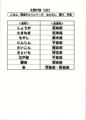 給食食材の産地情報