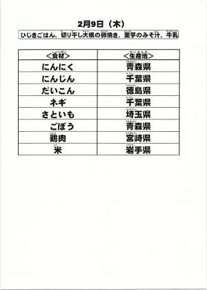 給食食材の産地情報