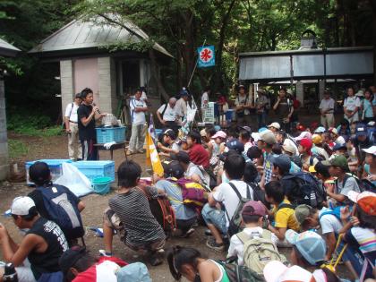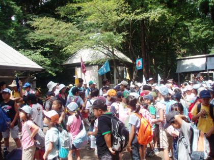 奥沢地区委員会夏の恒例行事の飯盒炊爨がありました。奥沢小学校・東玉川小学校の児童、PTA、奥沢中学校ボランティアの生徒、地区委員をはじめとする地域の協力者、3校の教員、総勢約180名参加の大イベントでした。