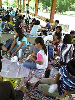 時間にゆとりがありましたので、ゆっくりお弁当をたべました。ひかげでも暑いです。
