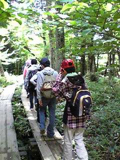 お弁当を受けとった後、行動班ごとに戦場が原ハイキングに出発しました。