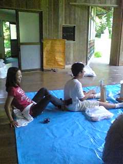 行田先生も挑戦しました。同じ姿勢を続けているので腰が痛くなります。マッサージをしてもらっている人もいました。