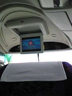 バスの中では、眠る人、ビデオを見る人様々です。渋滞が無ければ帰校時刻が早まりそうです。