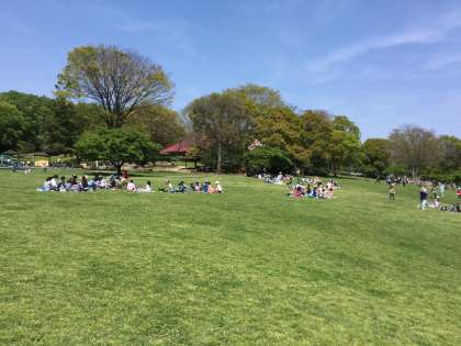 広い芝生の上でお昼ご飯です。