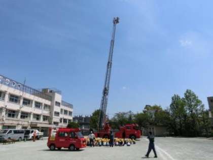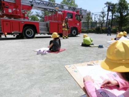 今年度も玉川消防署の皆様にご協力いただいて「はたらく消防の写生会」が開かれました。好天に恵まれ青空の下で、大きな消防自動車と小さな消防自動車の絵を描きました。防火服に身を包んだ消防士さんにも立っていただいて、迫力満点。ダイナミックな絵が描けました。