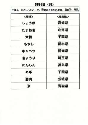 給食食材の産地情報