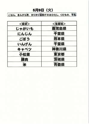 給食食材の産地情報