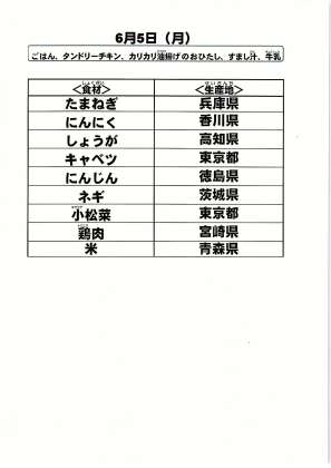 給食食材の産地情報