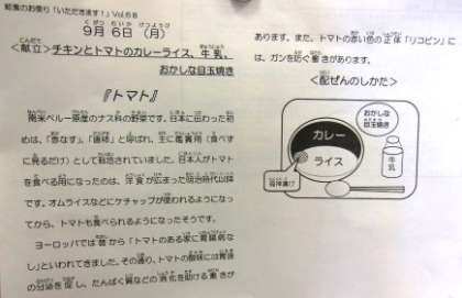 当番の給食委員さんが「おいしい」という言葉を使わずに、今日の給食の感想を書いてくれます。