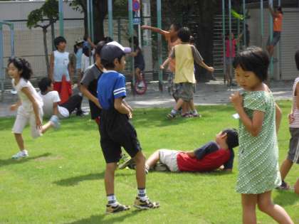 校庭の一部を芝生化しました。縄跳び、一輪車、竹馬、ボール遊び等は制限されていますが、休み時間多くの子どもたちが気持ちよさそうに芝生の上で遊んでいました。
