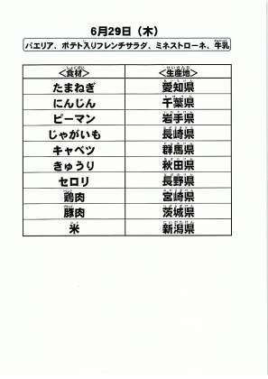 給食食材の産地情報