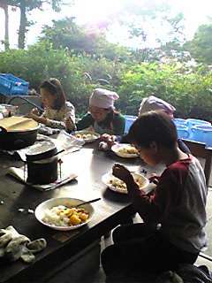 夕食は カレーライスを作りました。協力して おいしいご飯とカレーができました。