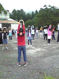 川場は深い霧に包まれています。朝会・体操も最終日にふさわしく先生の指示がなくてもできました。