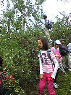 宮田農園さんのりんご園でりんご狩をしました。記念写真も撮りました。