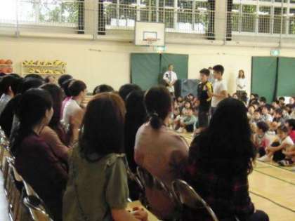 6月8日、木曜日に韓国の先生方が訪問され、歓迎式を行いました。クイズなどをして楽しみました。僕たちは、校歌とCOSMOSの合唱をプレゼントしました。そして、韓国の先生方と給食を食べました。少し不安もありましたが、最後には折り紙のツルを教えることができました! とても楽しかったです。次の機会があれば、ひがたまのことをもっと知ってもらえるようにしたいです。