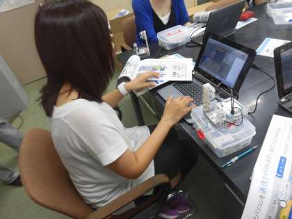 夏休みには、アーテック様からご提供いただいた教材を使用して、プログラミングの研修を行っています。