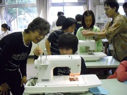 今日は、ミシンの学習で、地域の方々の支援をいただき学習していました。