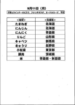 給食食材の産地情報