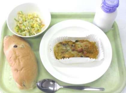 9月10日(金)ぶどうパン、かぼちゃのグラタン、コーンサラダ、牛乳