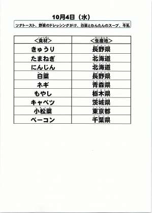 給食食材の産地情報