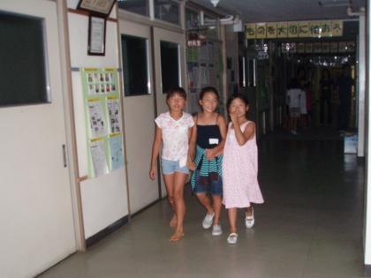 夏休み最後のイベント「きもだめし」が行われました。夜の学校は昼間と違って、ちょっと怖い場所になります。2階の廊下を使って毎年実施しています。
