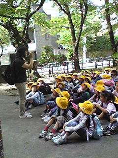 「あきをみつけよう」の学習で1年生と一緒に宝来公園と多摩川第公園へ行きました。宝来公園には、9時30分ごろ着きました。楽しみにしていたドングリ拾いでしたが、ドングリは、少ししか落ちていませんでした。